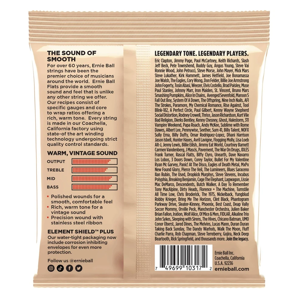 Las cuerdas de guitarra Ernie Ball de acero inoxidable Flatwound son el complemento perfecto para los instrumentistas que buscan un tono cálido y suave y una suave sensación vintage. Las cuerdas entorchadas están construidas con núcleos hexagonales de acero estañado, entorchadas con una cinta de acero inoxidable que ha sido pulida hasta obtener un acabado suave similar al del vidrio. El sonido resultante es de inspiración vintage con una base oscura y suave. Debido a la superficie plana pulida de la cinta, el ruido inherente de los dedos con las cuerdas tradicionales prácticamente se elimina, lo que hace que estas cuerdas sean las favoritas tanto entre los intérpretes de jazz como entre los artistas de grabación de sesiones.