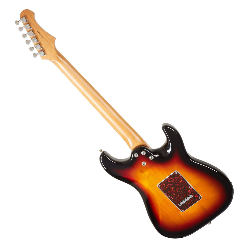 La JET JS 400 SB es una guitarra eléctrica que ofrece el diseno, la artesanía y las características tradicionales de los modelos ST a un precio asequible. El cuerpo de cal del instrumento está cubierto con una laca brillante. El mástil y el diapasón de arce canadiense atornillados han sido tratados térmicamente antes de su ensamblaje, lo que hace que la madera sea más estable y le da el aspecto y el aura de un mástil/ diapasón que ha sido tocado durante años.La combinación de una humbucker cobbler y dos pastillas de bobina simple con imanes de cerámica proporciona a la guitarra una amplia variedad de sonidos adecuados para muchos géneros musicales. El carácter del sonido se puede moldear con el potenciómetro de volumen, el obturador de tono y el interruptor de pastilla de cinco posiciones. Las cuerdas están ancladas mediante un traste de hueso en afinadores cromados y un trémolo sincronizado. El aspecto elegante de la guitarra se ve acentuado por un golpeador de imitación de carey.La marca relativamente nueva Jet Guitars ofrece guitarras eléctricas asequibles en diseños, colores y acabados tradicionales.